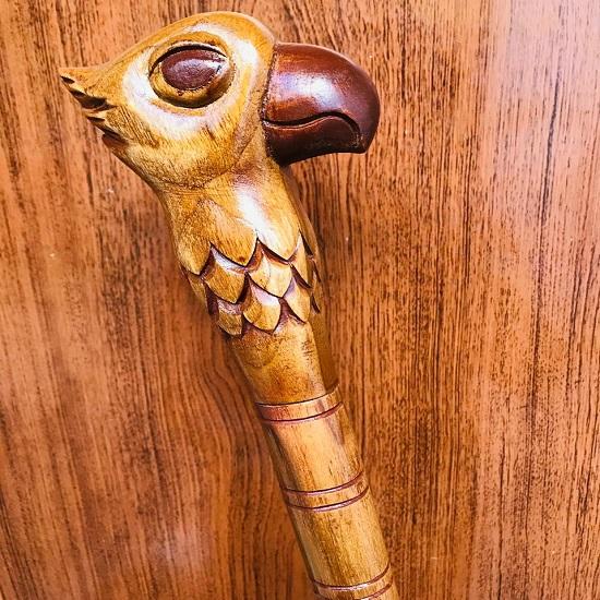 Handcrafted Parrot Head Walking Stick Unique Wooden Cane with Detailed Carving, Elegant and Functional