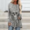 Plus Size Women Spring Halloween Printed Comfy Long Sleeve Round Collar T-shirt Casual Baggy Mid Length Tee Tops