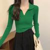 Jesień 2025 Sweter Krótki Dzianinowy Damski w Stylu Koreańskim z Kołnierzykiem Polo - Wąski Krój