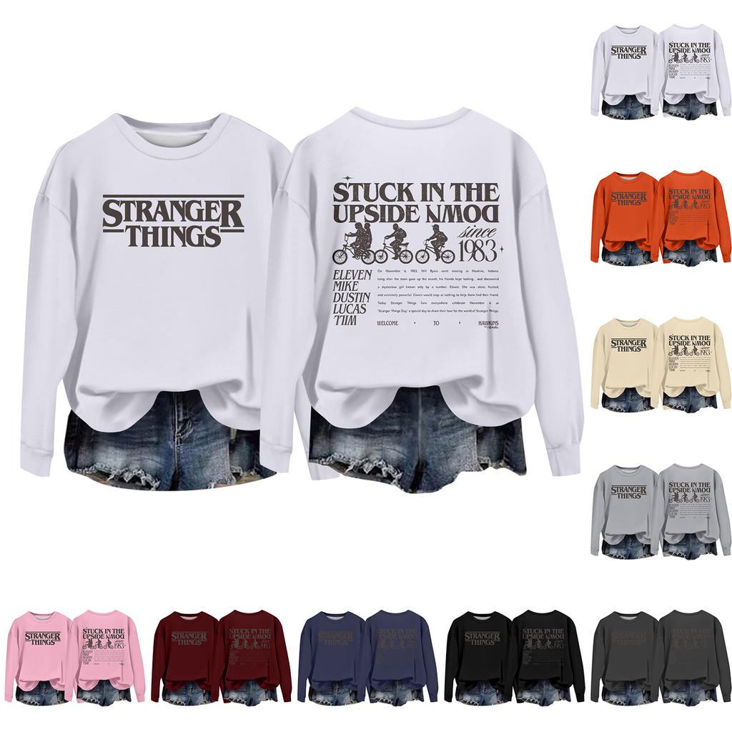 Damska codzienna bluzka typu pulower z okrągłym dekoltem i długim rękawem, z nadrukiem walentynkowym