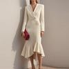 Damska Modna Elegancja Jednolity Kolor Długi Rękaw Kołnierz Garniturowy Talia Podkreślona Dopasowana Sukienka Bodycon Rybka