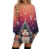 Damska Moda Casual Sukienka z Okrągłym Dekoltem i Długim Rękawem z Nadrukiem Świątecznym