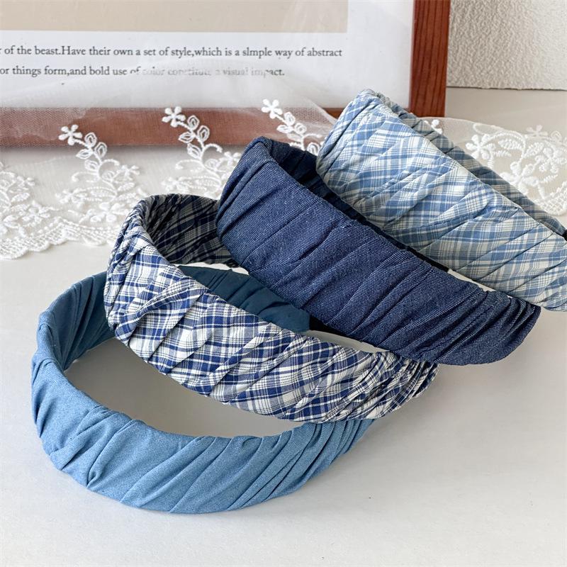 Korean Style Blue Denim Wide Twill Headband – High Skull Top Face-Washing Hair Accessory
