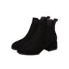 Damskie Jesienno-Zimowe Flokowane Krótkie Botki Modne Okrągły Nosek Antypoślizgowy Kwadratowy Obcas Jednolite Czarne Botki Rozmiar 35-41 Botki na Platformie