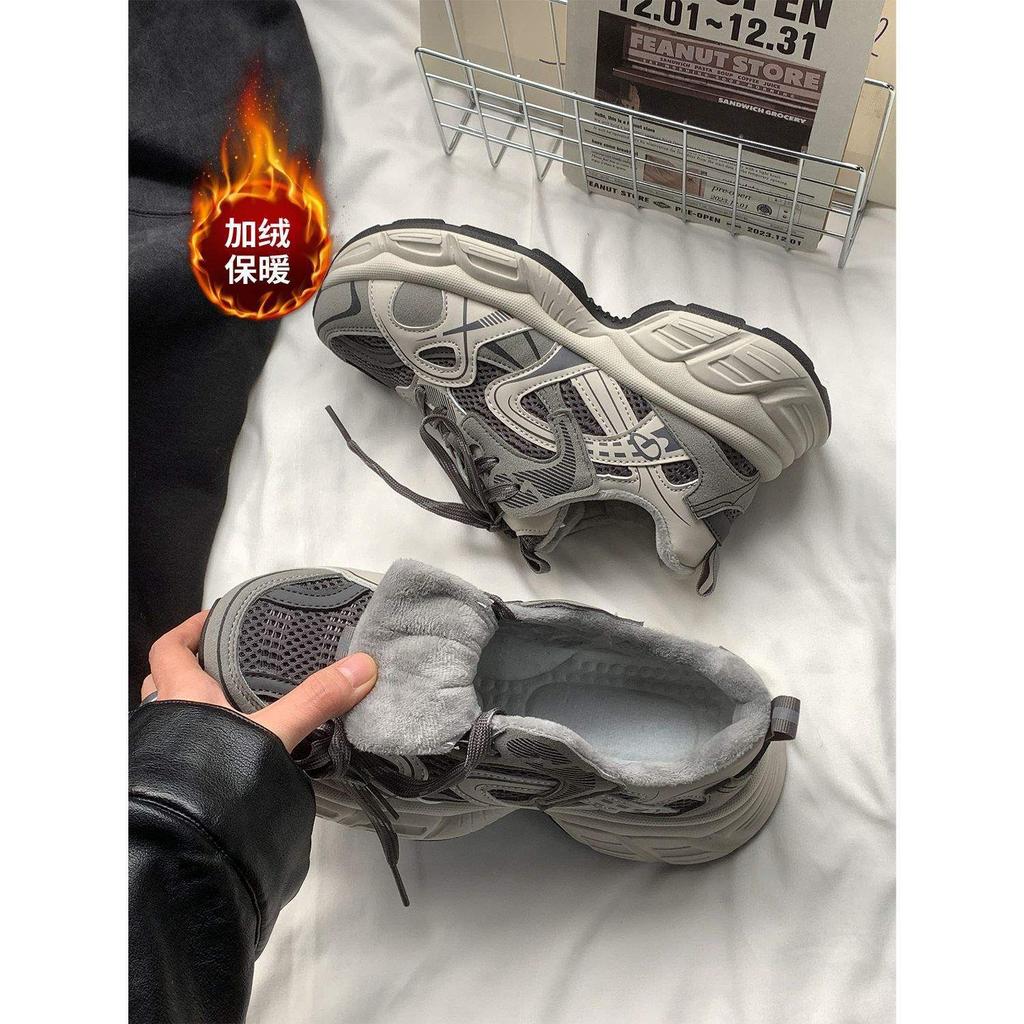 Cement gray low-top trend velvet leisure college thick-soled heightening fashion youth lace-up Hong Kong style warm dad shoes