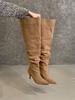 2025 europejskie i amerykańskie nowe jesienno-zimowe buty na cienkim obcasie ze szpiczastym noskiem, plisowane buty marszczone, kozaki do kolana, kozaki wysokie, buty damskie