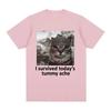 I Survived Today 's Tummy Pain T-shirt Meme cat pattern T-shirt men short-sleeved casual 100% cotton T-shirt