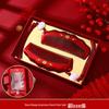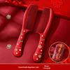 Bordowy Drewniany Zestaw Grzebieni Ślubnych z Lusterkiem - Pudełko na Prezent Weselny Panny Młodej