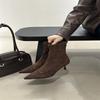 French kitten and suede pointed boots children's short boots 2025 new autumn and winter high-heeled thin boots