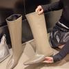 Modne Francuskie Retro Kwadratowy Nosek Podwyższony Blokowy Obcas Proste Cholewki Rycerskie Kozaki Płaski Wierzch Mały Mężczyzna Kozaki do Długich Nóg