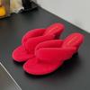 Fashion Red Fashion Round Toe Ladies Wedges Slippers Shoes Footwear Flock Women Wedges Slippers Shoes Female Sandals Slides Flip flops