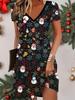 Moda Damska Sukienka z Dekoltem V i Krótkim Rękawem Świąteczny Nadruk Bałwana Seksowna Krótka Spódniczka Sukienki