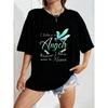 Damska koszulka casual czarna Mam dwoje aniołów czuwających nade mną i nazywam ich Mama Tata Nadruk Graficzny T-shirt Dla Rodzinnej Miłości Prezent na Dzień Pamięci