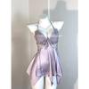 Mingjun Sukienka do spania z odkrytymi plecami, z wkładkami push-up i francuską kokardą