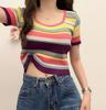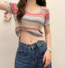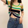 Słodka i Pikantna Koszulka Dzianinowa w Paski z Kwadratowym Dekoltem Damska Letnia Rok Slim Cienka z Poduszkami na Ramionach Krótki Krój z Krótkim Rękawem Top Casualowe Pulowery T-shirty