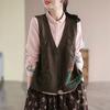 Kwiatowy, łatany, kieszeniowy, bawełniany, damski, dzianinowy kardigan, luźny i wyszczuplający, jesienny, swobodny, dekolt w serek, bez rękawów