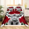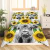 Zestaw Poszwy na Kołdrę Highland Cow Rozmiar Twin Krowa Kwiatowy Zestaw Pościeli Żółty Słonecznik Zachodni Zabawny Zwierzę Krowa Poliestrowa Poszwa na Kołdrę