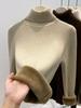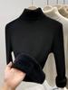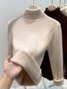 Autumn and winter new semi-turtleneck fleece sweater bottoming shirt women's integrated fleece thickened, warm and slim, knitted inside