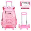 Plecak na kółkach w stylu koreańskim dla dziewcząt, w wieku 6-12 lat, klasy 1-3, 5-6 z szelkami redukującymi obciążenie.