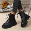 Plus Size Fall/Winter 2025 Women's Boots Martin Boots with Fleece Thick Soles and Lace-up Black Classic Booties for Women