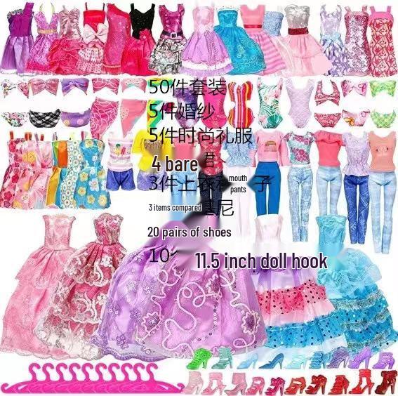 Dress-Up Doll Outfit Set: Wedding Dress, Pants, Accessories, Jewelry, Shoes, Bags, Short Skirt