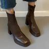 Cowhide version~ Black short boots, rear zipper, thick heel increased, thin women's small thin boots increased