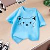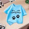 Summer Cute Cat Animal Print Round Neck Short Sleeved Tee Shirt for Boys and Girls Fashionable and Simple Children's T-shirt