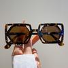Luxury Brand Designer Hollow Square Sunglasses Women For Men Vintage Fashion Sun Glasses Cute Trending Punk Double Color Shades
