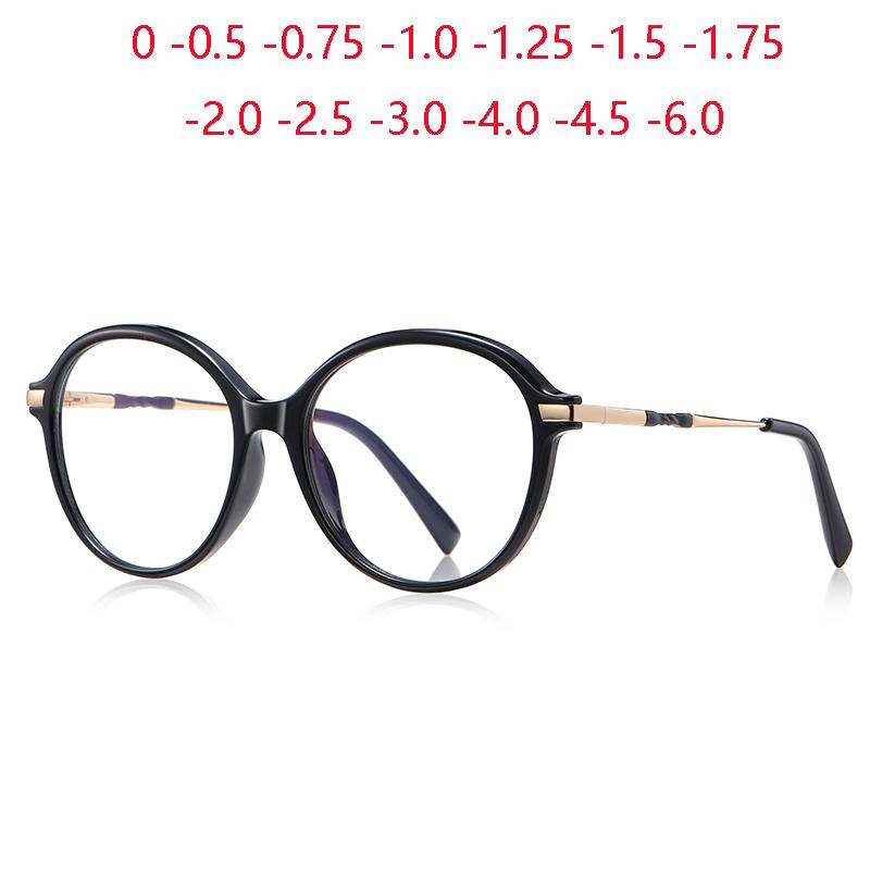 Diopter 0 -0.5 -0.75 To -6.0 Women Round Short-Sight Prescription Spectacles Frame Blue Light Blocker Student Myopes Lunettes
