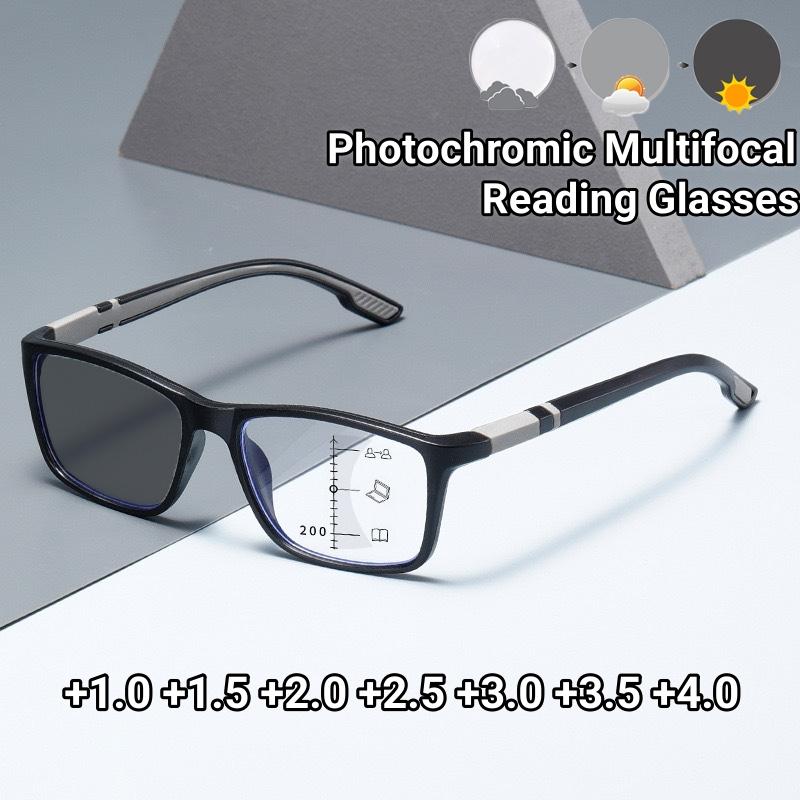 Retro Anti Slip Intelligent Photochromic Presbyopia Eyewear Multifocal Reading Glasses High-Definition Anti Blue Light Glasses