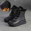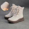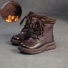 Johnature Krótkie buty na grubej podeszwie Retro Skóra naturalna Pluszowe Ciepłe Okrągły nosek Sznurowane Buty damskie
