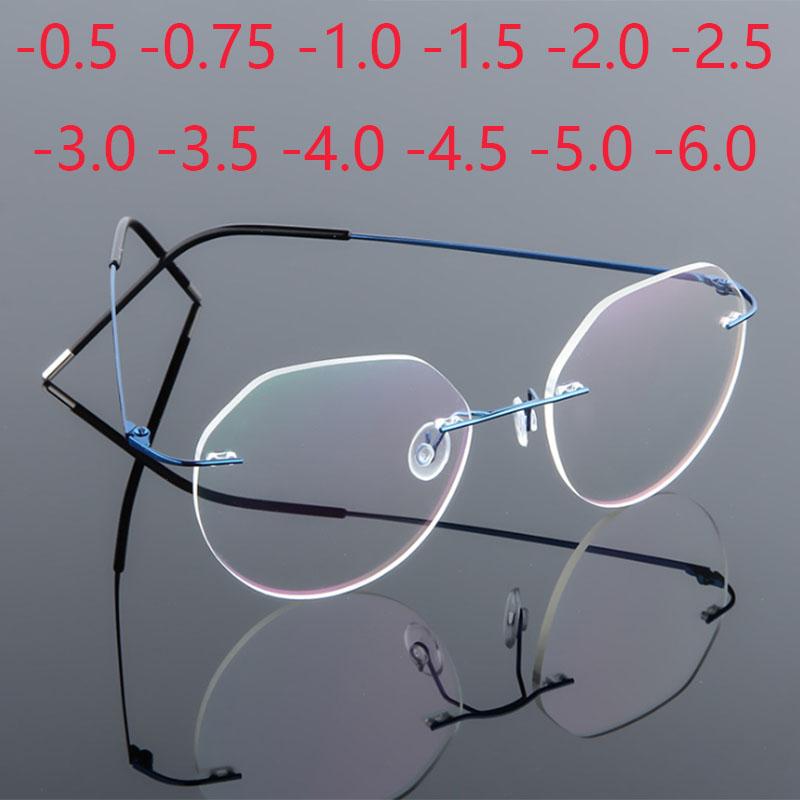 Polygon Foldable Flexible Ultra Light Titanium Alloy Myopia Eyeglasses Rimless Optical Glasses -0.5 -0.75 -1.0 -1.5 To -6.0