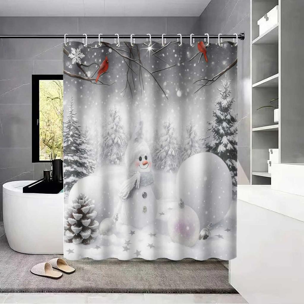 1 Pc Christmas White Snowman Shower Curtain Waterproof Shower Partition Curtain With 12 Hooks Multiple Sizes Machine Washable