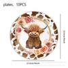 Materiały na przyjęcie urodzinowe z motywem krowy wyżynnej, urocza głowa krowy, talerzyk z bibuły, papierowy kubek, zwierzęca jednorazowa zastawa stołowa, prezenty