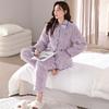 Pajamas Women'S Fleece Thickened Winter Coral Fleece Three-Layer Padded Warm Cardigan Loungewear Set