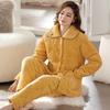 Pajamas Women'S Winter Winter Models Three-Layer Thickened Padded Coral Fleece Flannel Fleece Loungewear Large Size Warm Suit