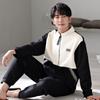 Pajamas Men'S Spring And Autumn Pure Cotton Thickened Long Sleeve Large Size Padded Cotton Air Cotton Interlayer Autumn And Winter Loungewear Set
