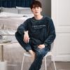 Męska piżama flanelowa jesienno-zimowa, wkładana przez głowę, aby zapewnić ciepło, zimowa, z grubego polaru, z polaru koralowego, męski zestaw do wypoczynku