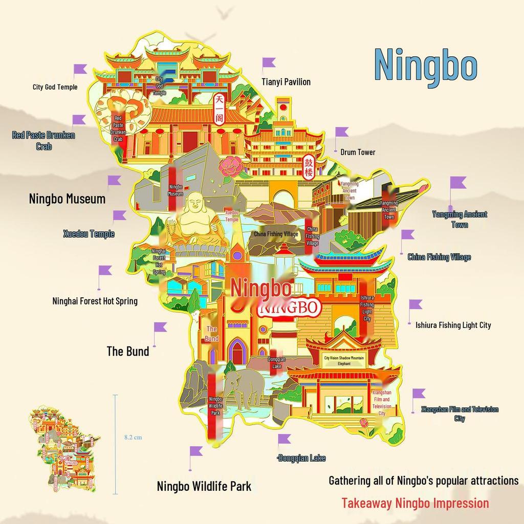 Starożytne miasto Yangming Jezioro Dongqian Metalowy magnes na lodówkę - Pamiątka z chińskiej wioski rybackiej