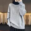 Women's Printed Sweater Autumn Winter Thick Soft Mock Turtleneck Sweater Color Block Loose Knit Pullover Top