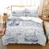 3Pcs Single-Sided Printed Bedding Set ,Comforter Pirate Sailboat Duvet Cover Ocean Bedding Cover Pillows Comfortable Bedspreads