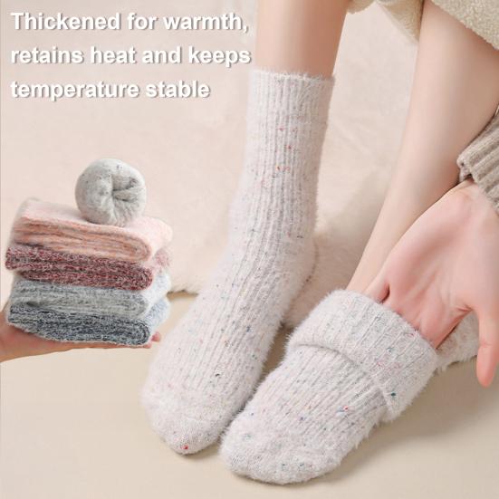 1 Pair Women Socks Highly Elastic Cozy Winter Ankle Socks Thickened Double-Sided Fleece Warm Slipper Socks