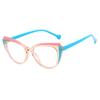 Kontrastowe okulary damskie typu kocie oko z przezroczystymi soczewkami są odpowiednie na co dzień i na wakacje latem.