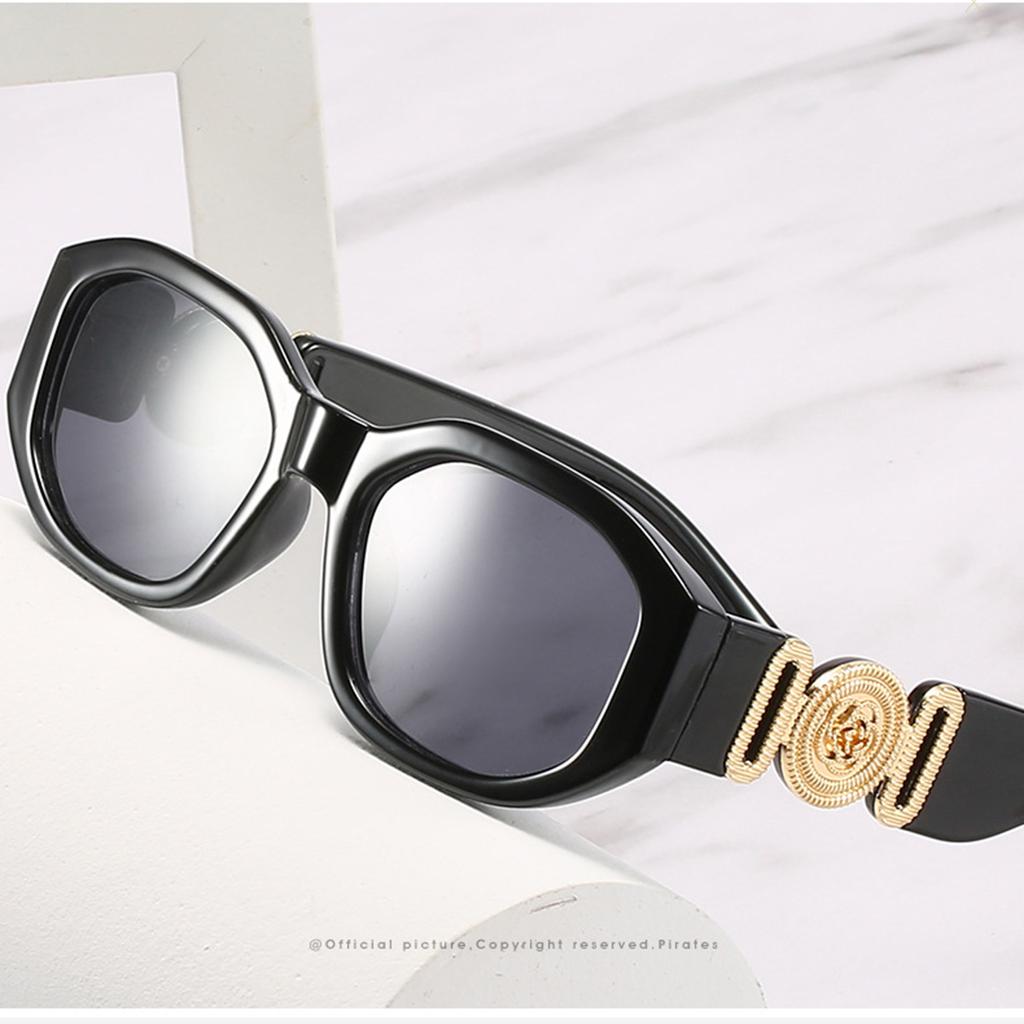 Nowe małe okulary przeciwsłoneczne w pudełku, trendy europejskie i amerykańskie, okulary przeciwsłoneczne z wielokątnymi okularami i spersonalizowanym wzorem.