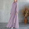 ZANZEA Muslim Casual Irregular Pleated Design Women Loose Long Sleeve Dress