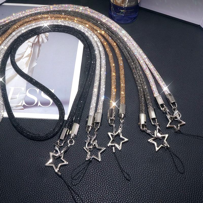 1 szt. 70CM Sznurek do telefonu Luksusowy brokatowy sznurek z cyrkoniami i kryształkami Anti-lost Wiszący na szyi kryształowy pasek na nadgarstek do telefonu komórkowego