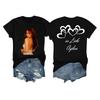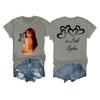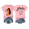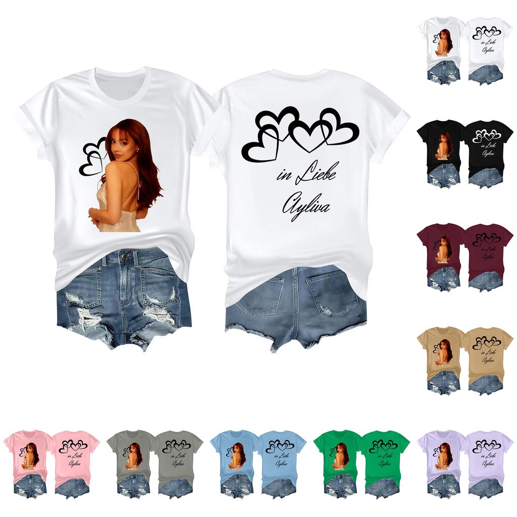 Damska casualowa koszulka z nadrukiem, z okrągłym dekoltem, wciągana, z krótkim rękawem