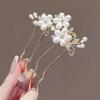 1pc Elegant Hair Clip Artificial Pearl Floral Design Women U-shaped Hairpin for Daily Holiday Wear Hair Needles Hair Accessories