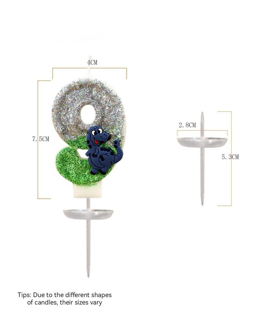 Świeczka urodzinowa z brokatem dinozaura, wysokość 3 cale, brokatowy wzór 3D, topper na tort, świeczki urodzinowe na tort z motywem zielonych zwierząt