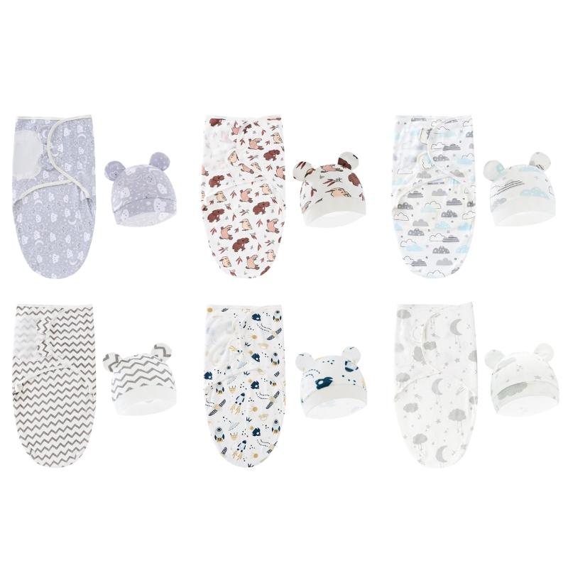 Baby Wrap Blanket & Beanie Hat Newborn Swaddling Blanket Cotton Sleeping Bag Hospital Hat for Infant Gender Neutral Hat